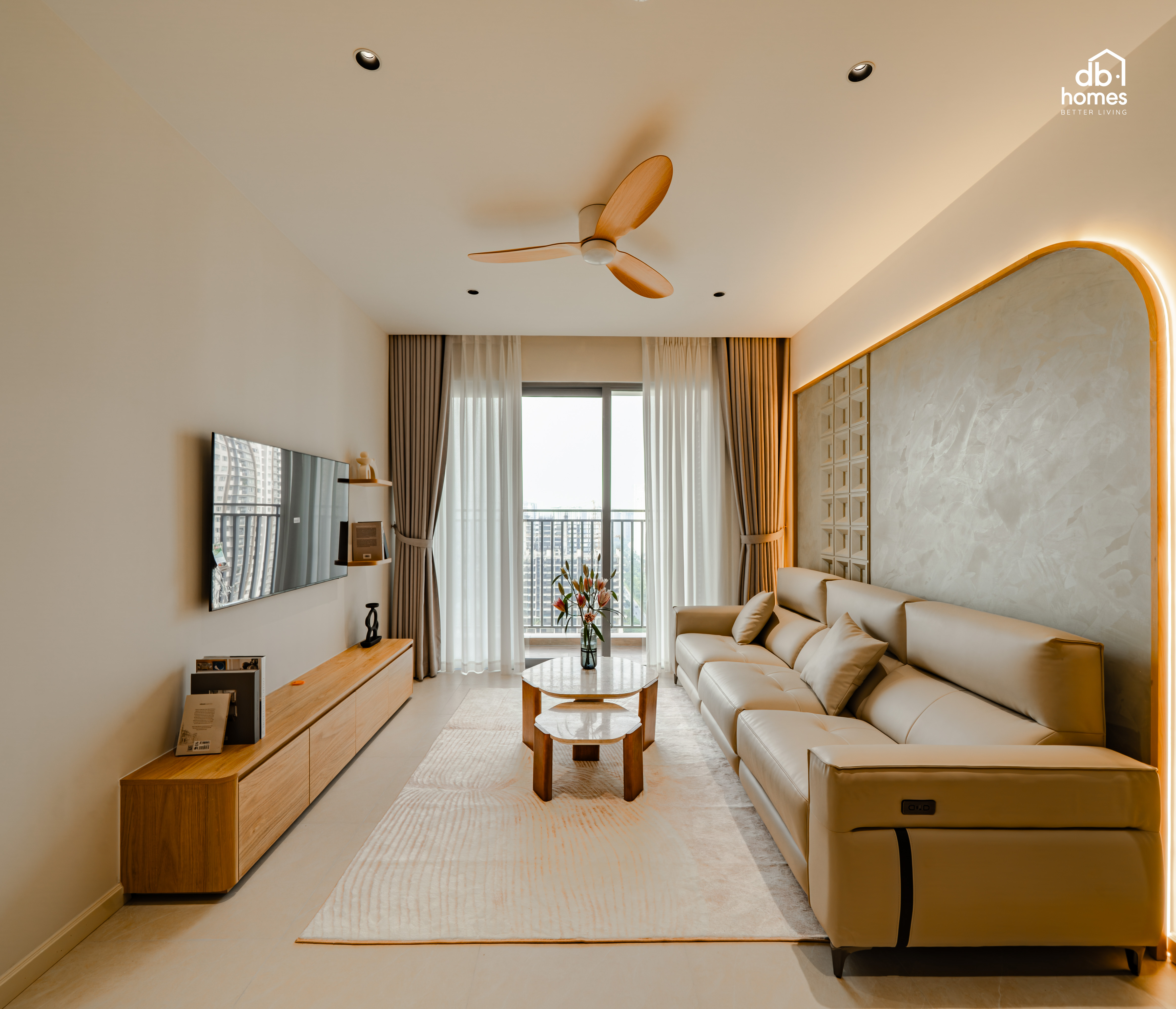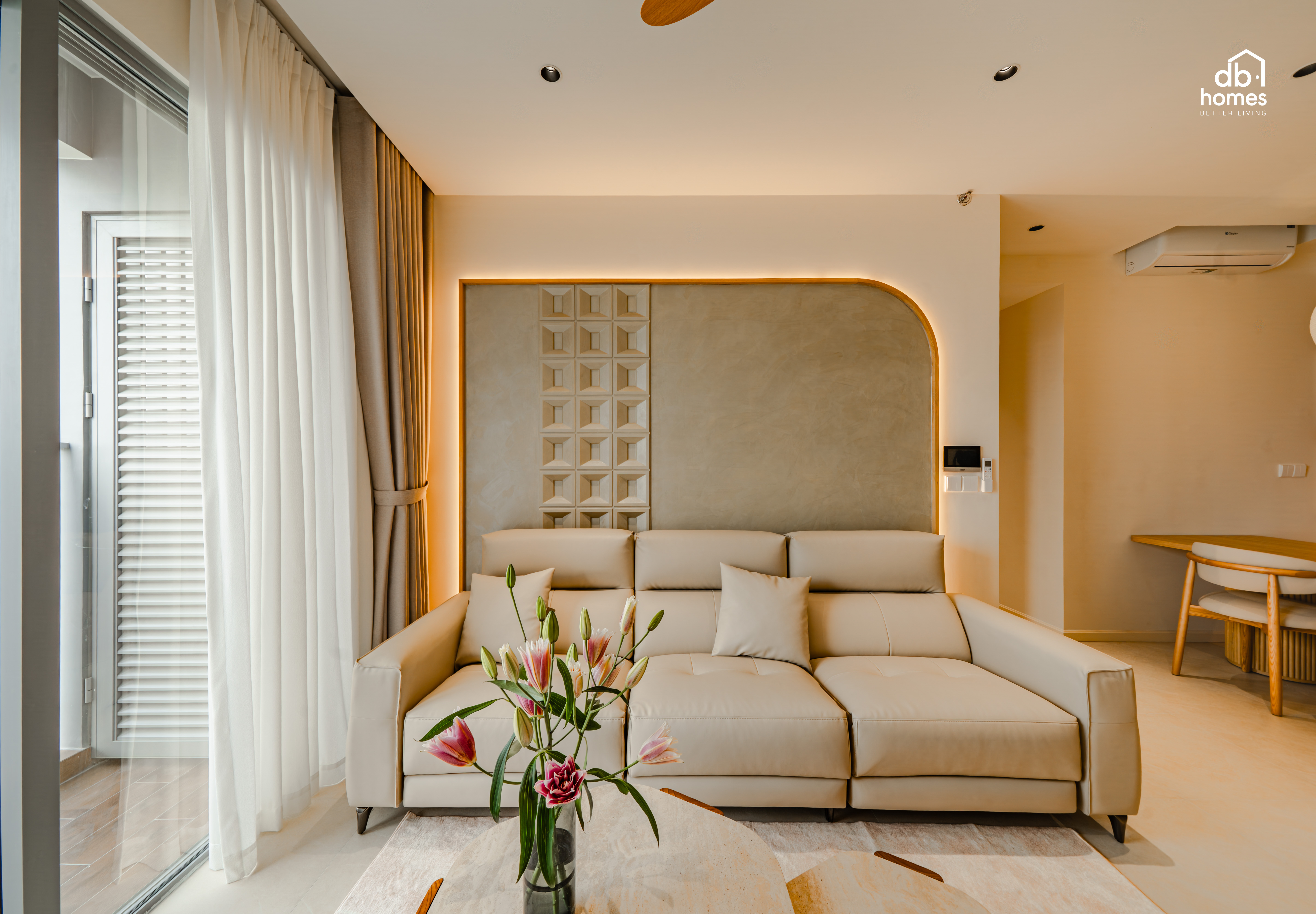 Tọa lạc tại Celesta Rise (Nhà Bè), căn hộ 70m² do DBHomes thiết kế và hoàn thiện theo tinh thần Wabi Sabi, phong cách đề cao sự giản lược, chiều sâu cảm xúc và những giá trị bền vững theo thời gian.