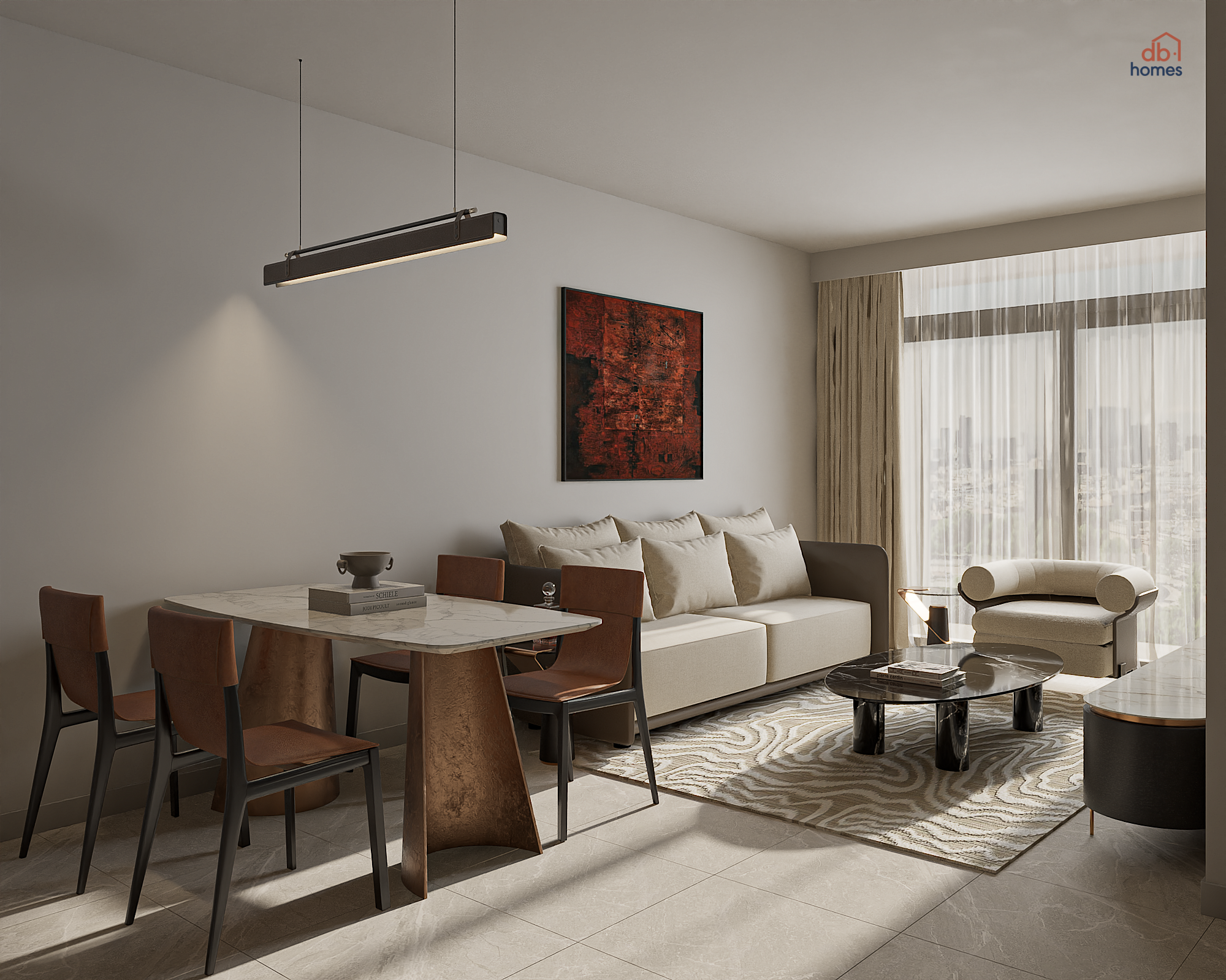 "Thiết kế theo phong cách kiến trúc đương đại phương Tây, dự án căn hộ The Filmore sử dụng gam màu chủ đạo xám trắng và be. Sự kết hợp khéo léo các yếu tố bản địa đặc sắc tạo nên không gian sống thanh lịch và ấm cúng. Màu sắc này không chỉ mang lại sự tao nhã, hòa dịu mà còn hiện đại và tinh tế. Với phương châm 'Nhà là nơi nói lên điều bạn muốn' và mong muốn mang đến sự tỉ mỉ, đẳng cấp trong từng chi tiết, DBHOMES tự tin đã tạo ra không gian sống hoàn hảo, độc đáo, phản ánh đúng cá tính và phong cách sống của từng gia chủ."