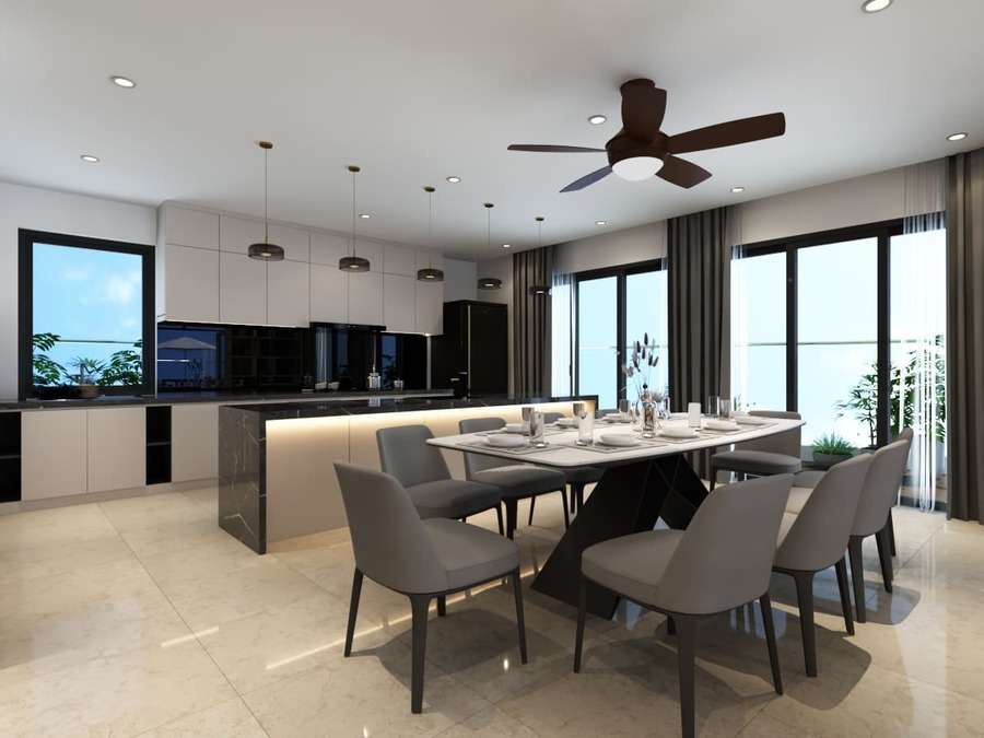 Phong cách hiện đại với nội thất tinh giản được đội ngũ DBHomes mang đến cho căn Penthouse Blue Sapphire sự thoáng đãng và nguồn năng lượng tích cực. Thiết kế mở với hệ thống cửa kính lớn khiến cả căn hộ như được đắm chìm trong một bản giao hưởng ánh sáng rực rỡ. Sự phối hợp ăn ý của các sắc màu kem, nâu, trắng tô điểm thêm vẻ thời thượng cho “tổ ấm” của căn nhà đơn giản mà không hề đơn điệu, tất cả các chi tiết nội thất đều hòa quyện mượt mà tạo nên tổng thể căn hộ sang trọng, đẳng cấp, thu hút ánh nhìn của các vị khách ghé thăm.