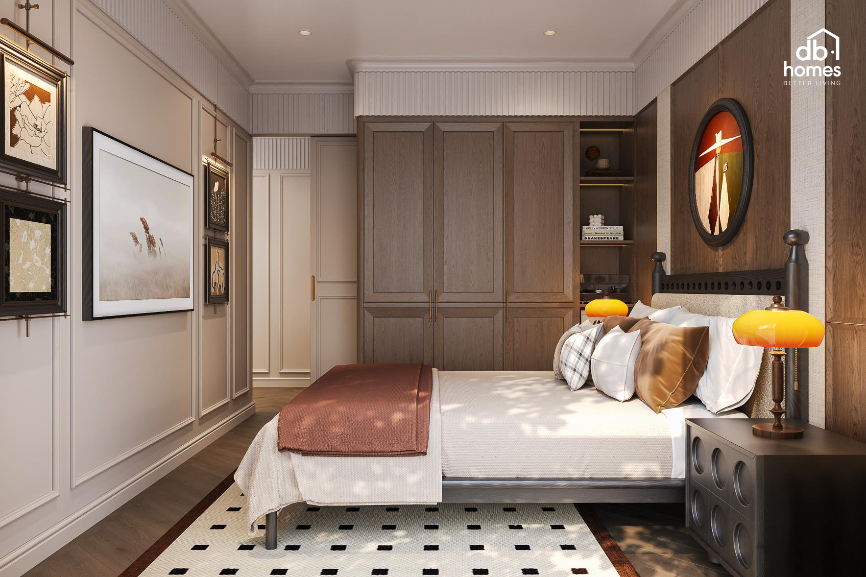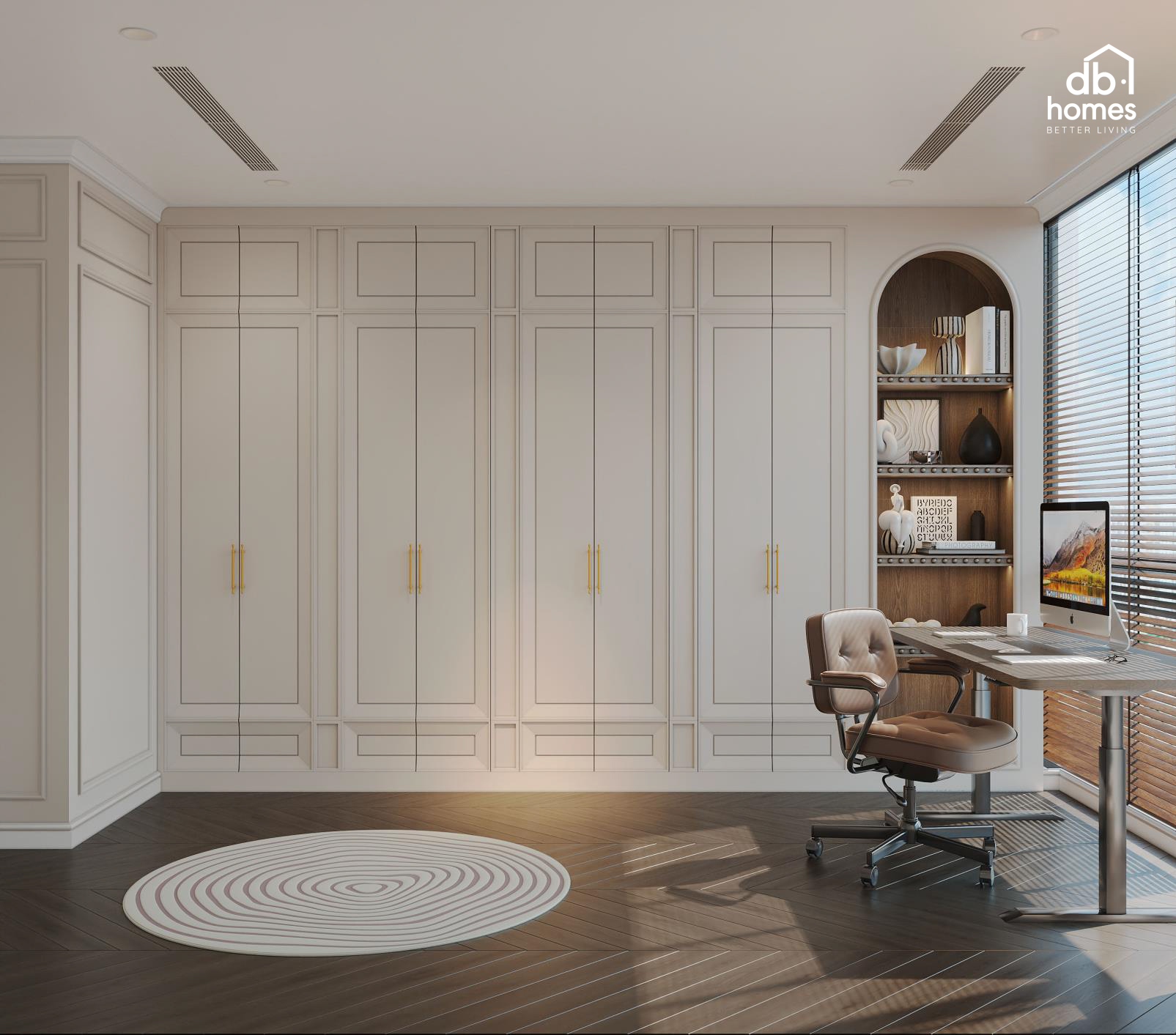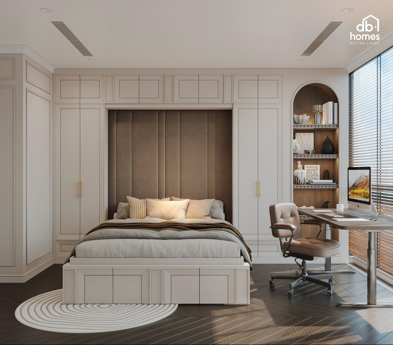 Bố cục được tổ chức theo hướng mở, liên kết các khu vực chức năng một cách liền mạch, tối ưu công năng sử dụng và đón trọn ánh sáng tự nhiên. Đặc biệt, tại không gian phòng ngủ hướng phố, giải pháp giường Murphy được tích hợp linh hoạt, cho phép gấp gọn v