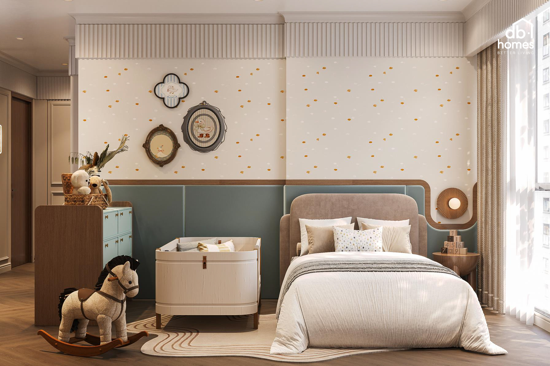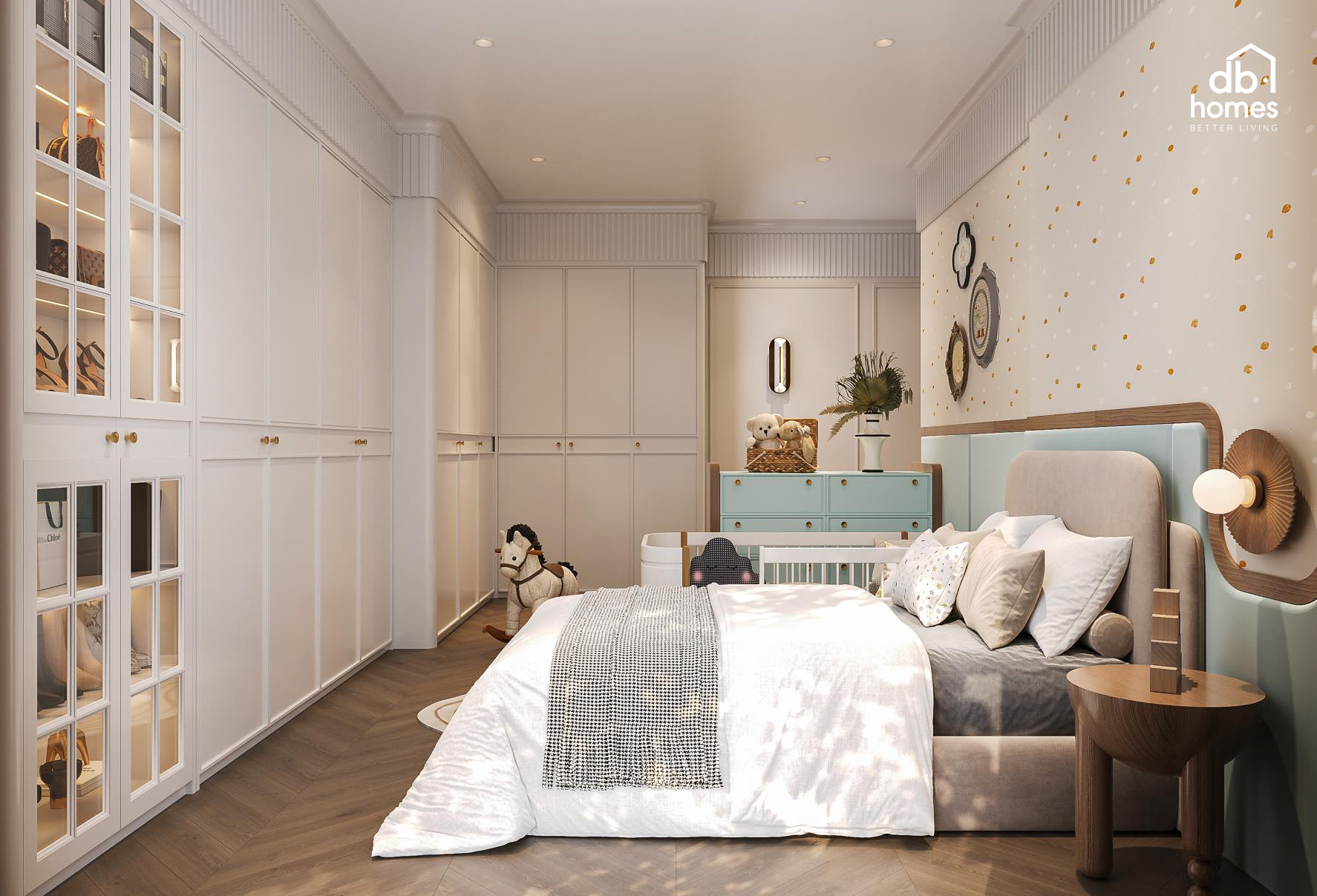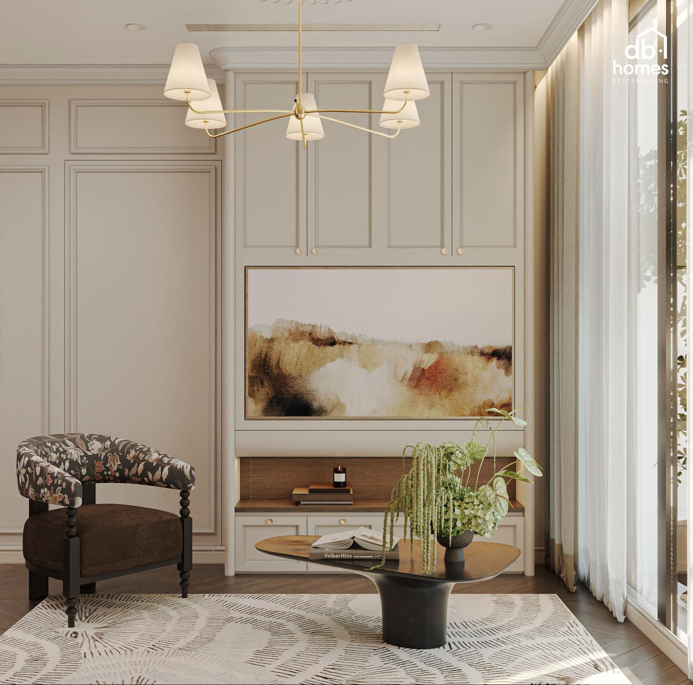 Không gian sử dụng bảng màu trung tính với các sắc độ ấm, kết hợp cùng chất liệu gỗ và bề mặt hoàn thiện tinh giản, mang lại cảm giác ấm áp và hài hòa. Sự cân bằng giữa vật liệu, màu sắc và ánh sáng góp phần định hình một không gian sống vừa tinh tế vừa gần gũi.