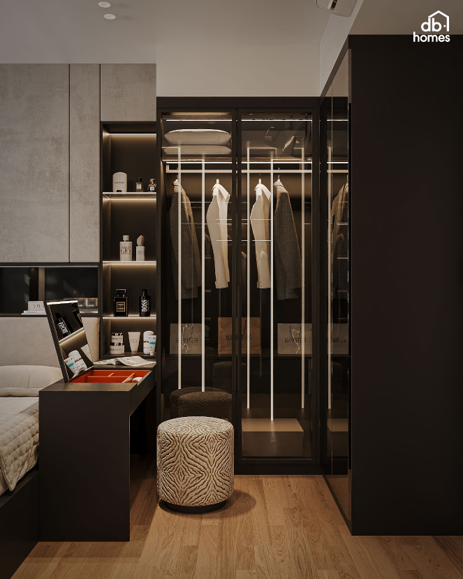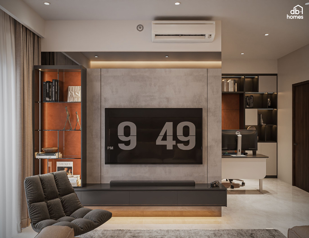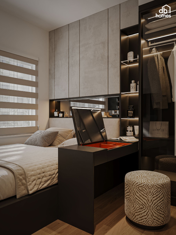 Với đặc thù công việc trong ngành tài chính cần sự tập trung và riêng tư, DBHomes đã thiết kế một khu vực làm việc tinh gọn và linh hoạt tại nhà.Với giải pháp nội thất trọn gói, DBHomes không chỉ mang đến vẻ đẹp độc đáo cho căn hộ The Privia mà còn giúp gia chủ tận hưởng một mùa Tết trọn vẹn, ý nghĩa với cam kết thời gian thi công, bàn giao đúng tiến độ trước Tết.