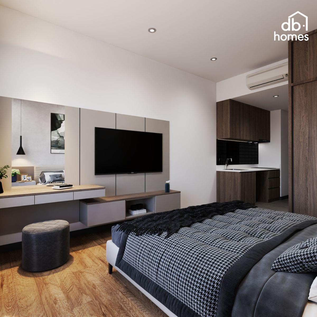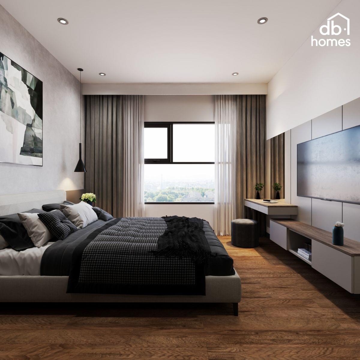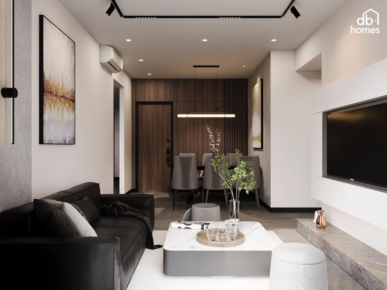 DBHomes thể hiện tinh thần thiết kế của dự án MODERN RHYTHM qua sự kết hợp giữa ánh sáng và vật liệu. Bảng màu trung tính được xử lý tinh tế, làm nổi bật chất liệu gỗ, đá và kim loại mờ, mang lại vẻ sang trọng và cân bằng thị giác. Bố cục mở, đường nét tối giản cùng hệ đèn âm trần giúp ánh sáng tự nhiên trở thành yếu tố chủ đạo, tạo nên không gian sống hiện đại và hài hòa.