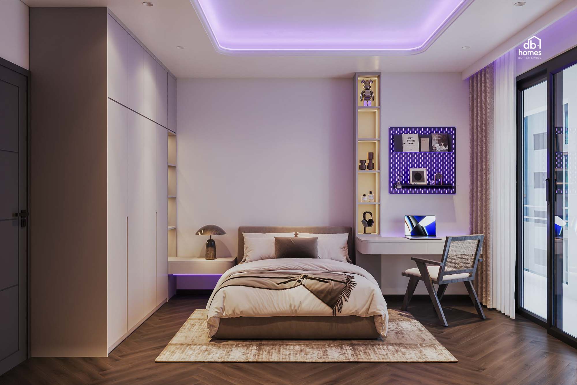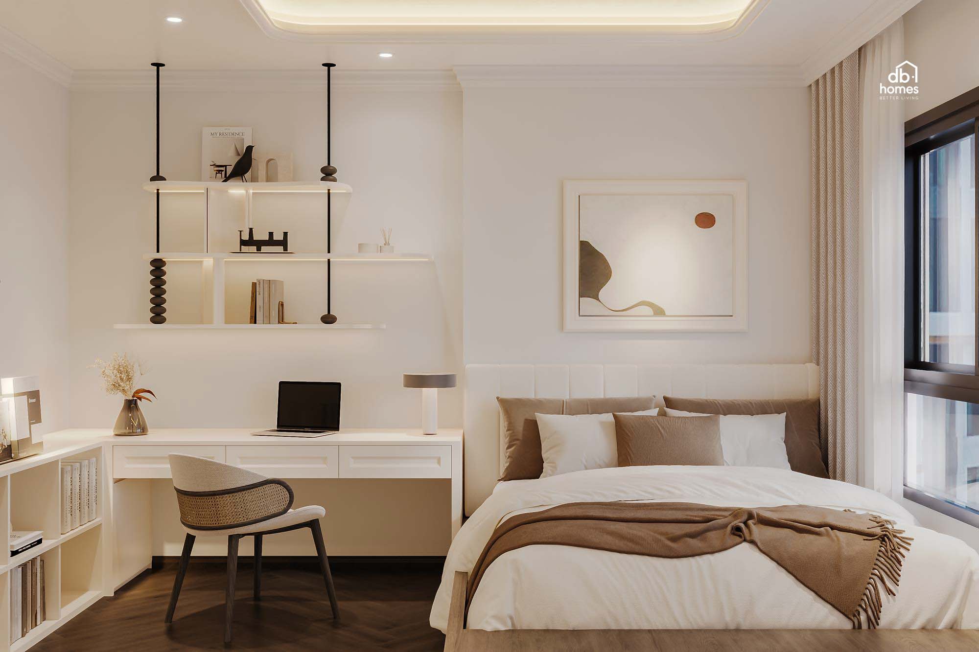 Phòng ngủ còn lại mang tinh thần hiện đại và năng động hơn, với thiết kế gọn gàng, tối ưu công năng, phù hợp với nhịp sống trẻ trung và linh hoạt.