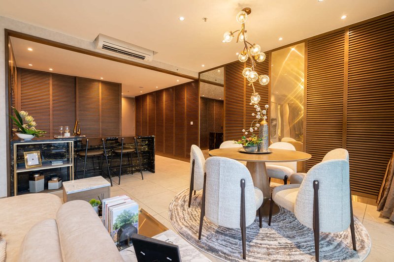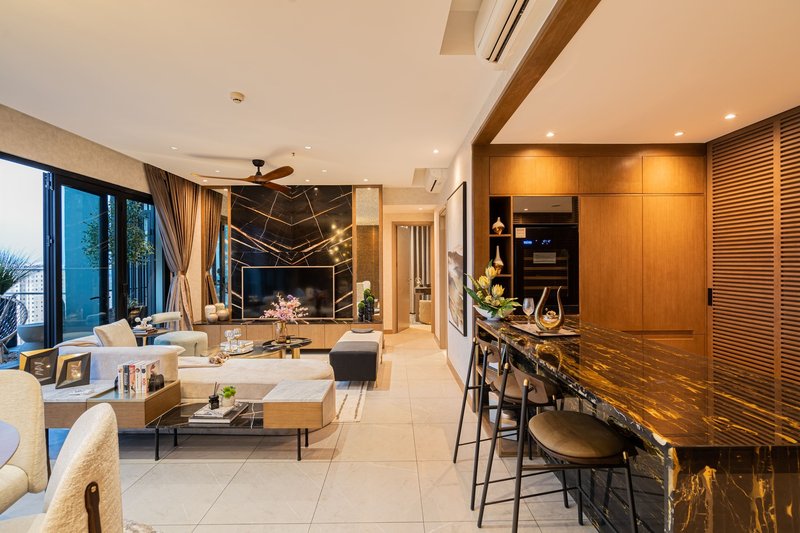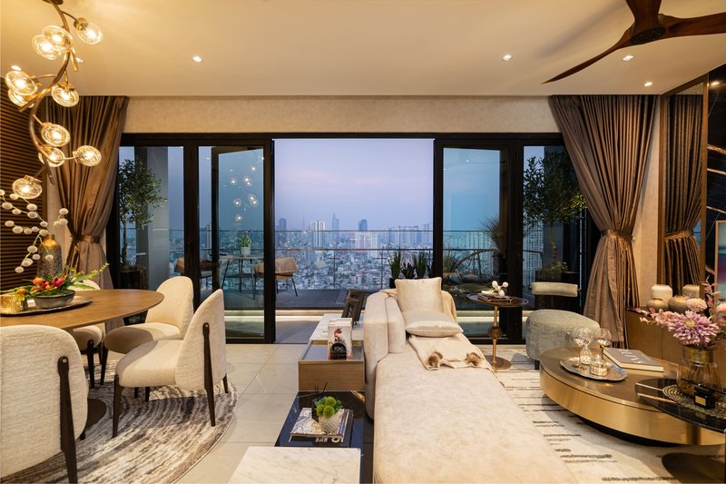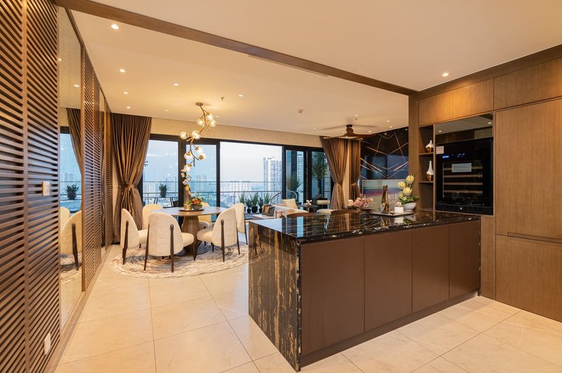 Căn Serenditipy Hennessy Penthouse được DBHomes thiết kế với mong muốn mang tới một không gian mở, tận dụng tối đa ánh sáng tự nhiên và mang lại cảm giác thoải mái, rộng rãi. Với tông màu ấm áp, kết hợp với nội thất cao cấp được chọn lọc kỹ lưỡng, căn hộ mang đến một trải nghiệm sống xa hoa và đẳng cấp. Các khu vực phòng khách và phòng ăn được bố trí một cách hợp lý, tạo nên sự liền mạch và hài hòa trong tổng thể thiết kế. Đặc biệt, căn hộ còn sở hữu ban công rộng rãi với tầm nhìn toàn cảnh thành phố, là nơi lý tưởng để thư giãn và tận hưởng những khoảnh khắc bình yên giữa lòng Sài Gòn nhộn nhịp.