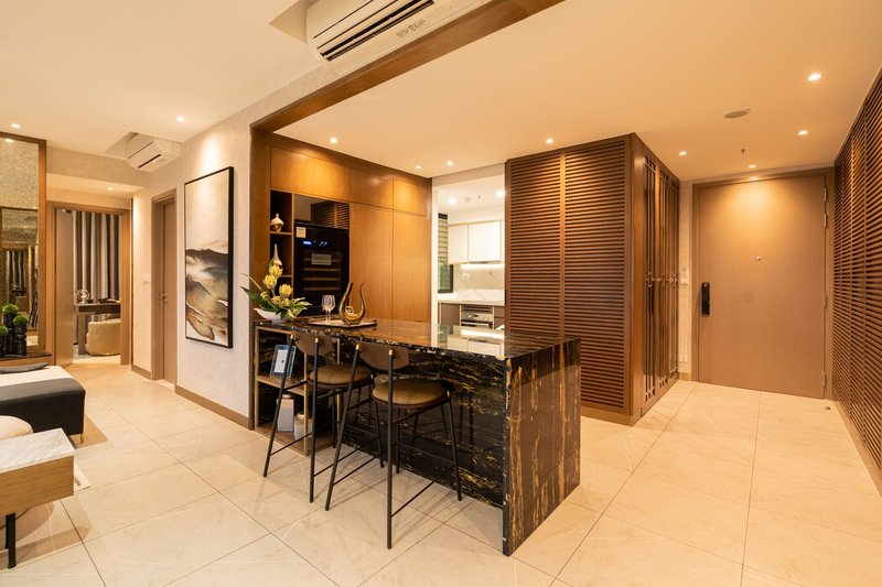 Tọa lạc tại quận 1, trung tâm tài chính – thương mại sầm uất của thành phố Hồ Chí Minh, D1MENSION là dự án đẳng cấp, sang trọng thuộc sở hữu của tập đoàn CapitaLand. DBHomes tự hào được thi công căn Penthouse Serenditipy Hennessy nằm ở tầng 15 với diện tích 190m2 của dự án này. Căn hộ mang hơi thở nhẹ nhàng và thanh tao khi theo đuổi phong cách sang trọng và hiện đại theo ước muốn của chủ đầu tư.