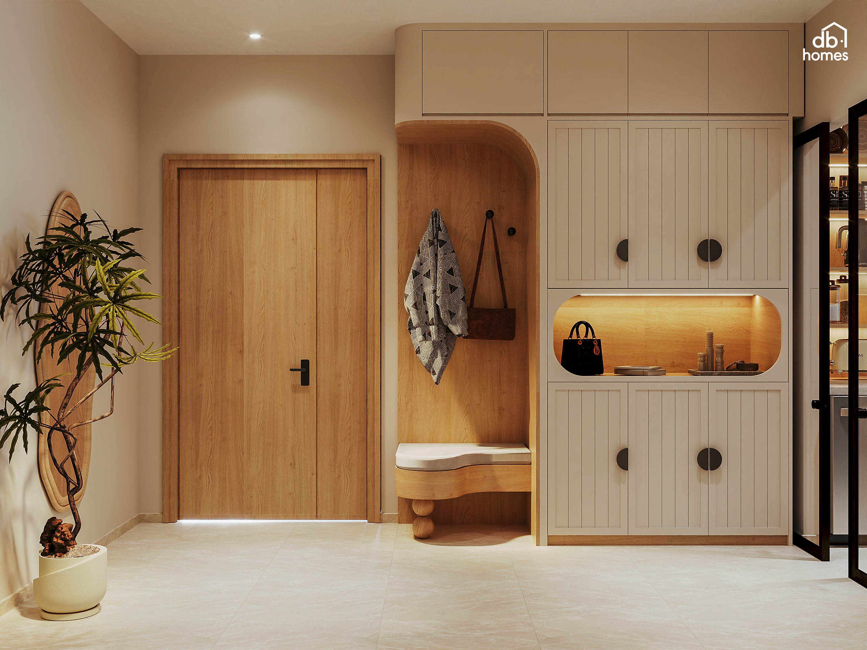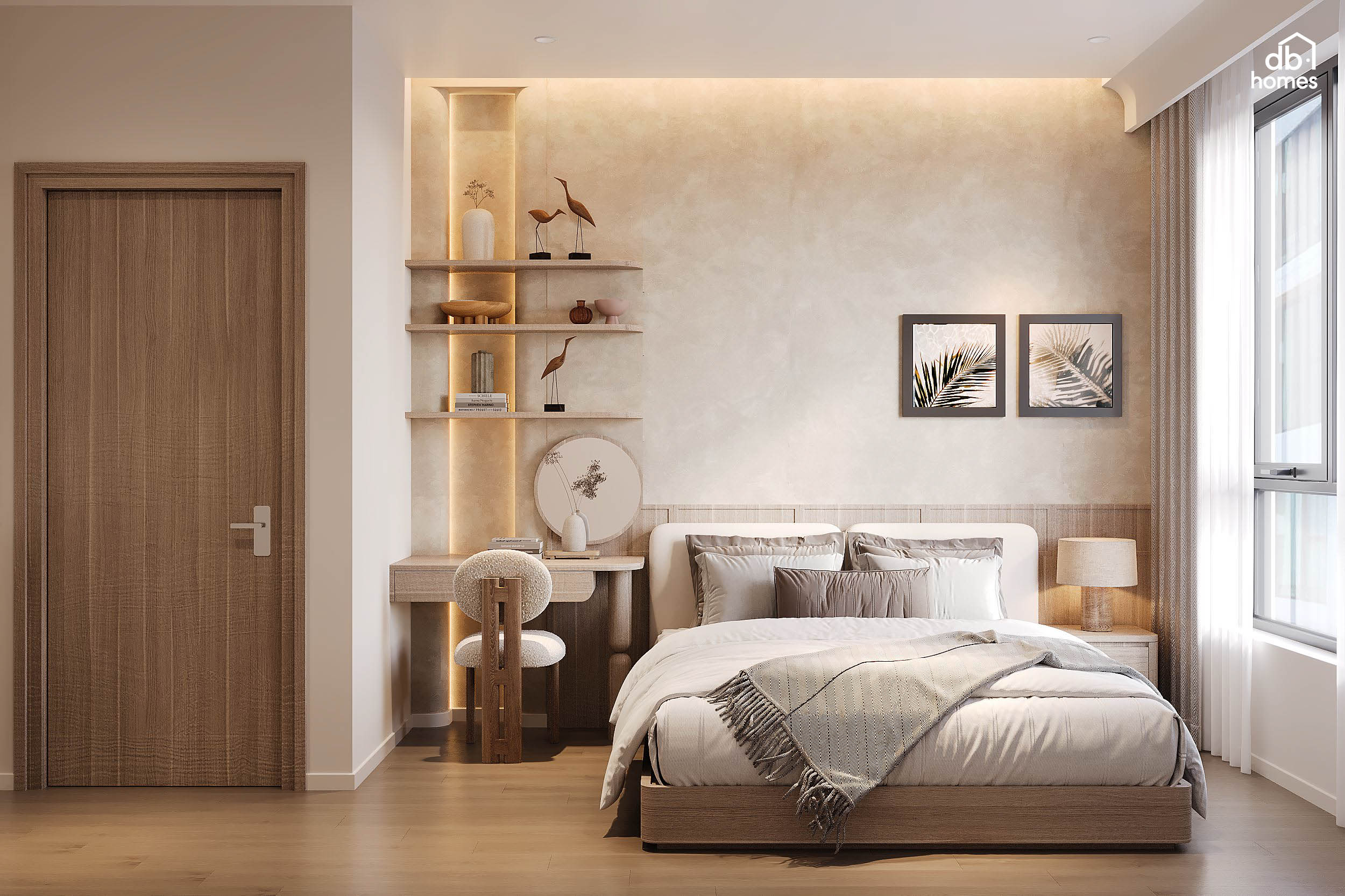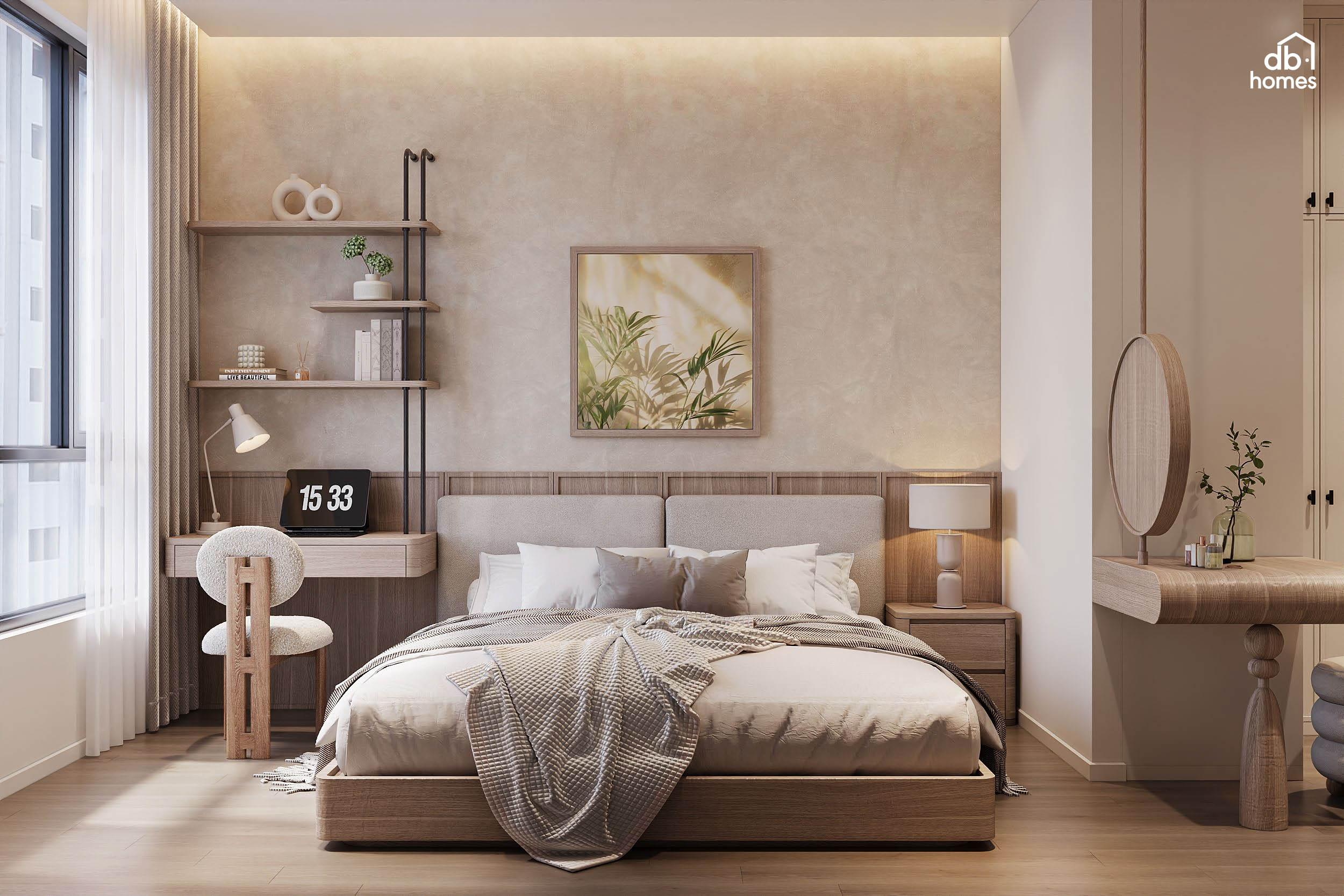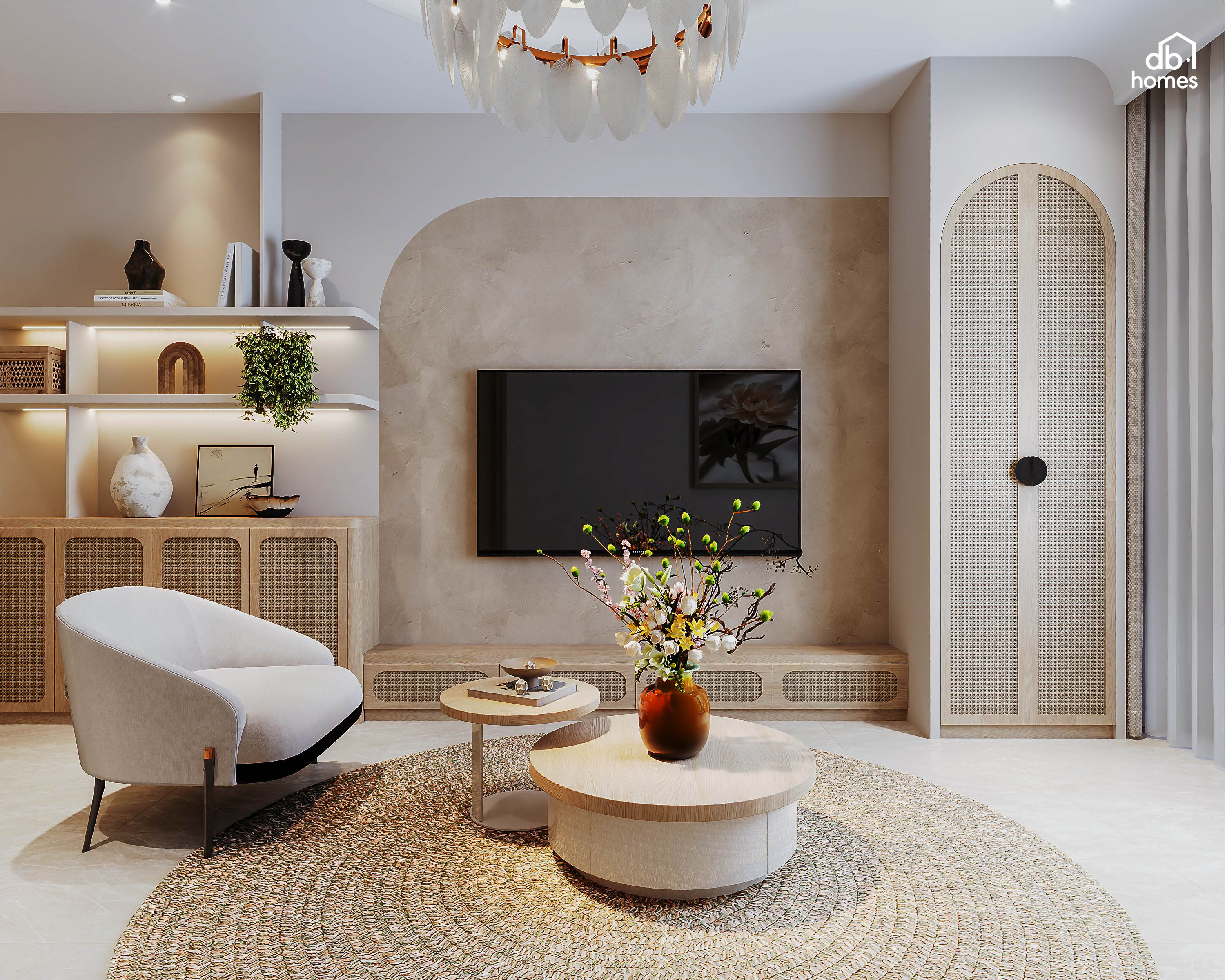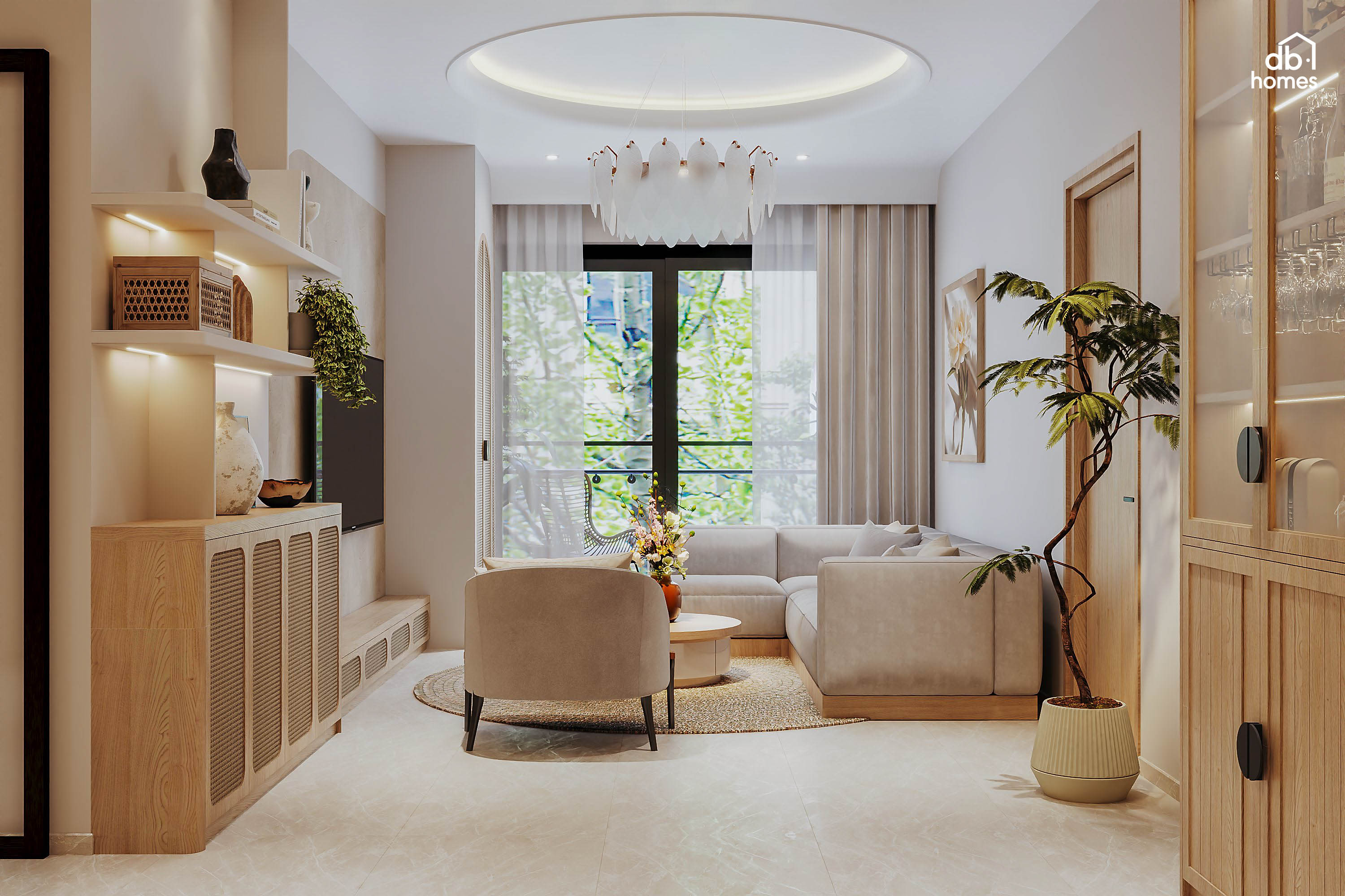 Tại dự án căn hộ Sycamore (Bình Dương), DBHomes mang đến sự giao thoa tinh tế giữa phong cách Wabi Sabi kết hợp Japandi. Đối với gia chủ là một nữ doanh nhân, căn hộ không chỉ là nơi ở mà còn là không gian chữa lành giúp tái tạo năng lượng sau nhịp sống kinh doanh bận rộn.
